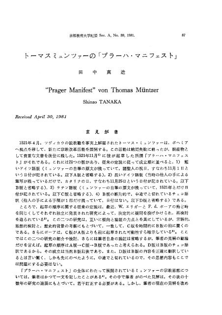 Le Conseil municipal de Zwickau vient de révoquer Müntzer de son poste de pasteur en raison des troubles populaires auxquels ses prédications exaltées ne seraient pas étrangères. Il s'installe en à Prague et fait paraître le Manifeste en novembre.